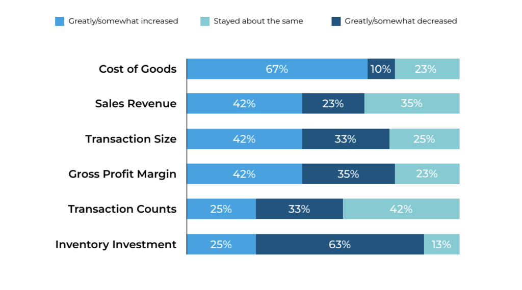 About two thirds of retailers reported higher cost of goods year to date in 2025 compared to 2024, reflecting continued but easing cost pressures relative to earlier in the year. Increases across other operational metrics were reported by a smaller share of retailers, pointing to narrower growth year to date.